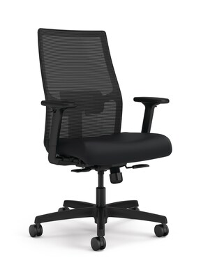 HON Ignition 2.0 Mid-Back Task Chair, 4-Way Stretch Mesh Back, Black Vinyl, Black Mesh, Black Base , Soft Casters.