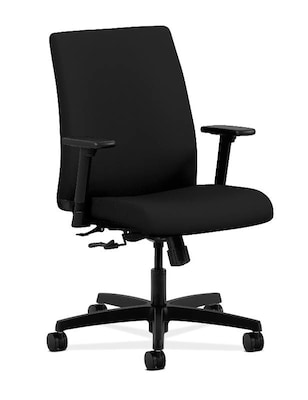 Adjust this chair's height, tilt and arm positioning to customize your workplace comfort. Featuring 360-degree swivel around a sturdy, five-star wheeled base, this HON low-back task chair supports a full range of motion around the office from the comfort of its cushioned seat.