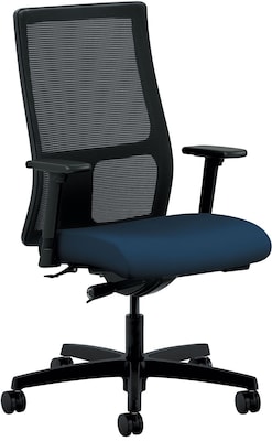 HON Ignition ilira-Stretch Mesh/Fabric Mid-Back Task Chair, Height and Width Adjustable Arms, Black/Navy (HONIW103CU98)
