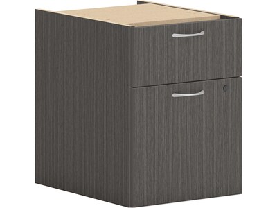 There is always beauty in simplicity, but with the HON Mod desk collection, you'll also find variety and value. This 15"W hanging pedestal increases the storage capacity of a Mod workstation. One box drawer holds office supplies and personal items, and one file drawer organizes paperwork. The durable laminate surface comes in slate teak finish. It's totally productive.