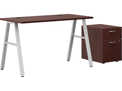 HON Mod 48"W Table Desk with Mobile Storage, Traditional Mahogany (HLPL4824BFTM1ALEGSLV)