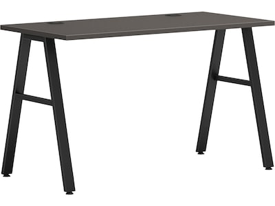 There is always beauty in simplicity, but with the HON Mod desk collection, you'll also find variety and value. This table desk features a 48"W x 24"D work surface sitting atop A-frame legs. The durable laminate surface is available in a variety of attractive finish options, which allows you to mix and match with other Mod elements. It's totally productive. Totally adaptable. Totally Mod. The laminate finish is slate teak, and the A-leg color is black.