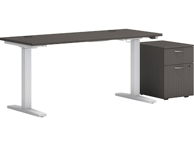 HON Mod 60"W Adjustable Standing Desk with Mobile Storage, Slate Teak (HLPLRW6024CHATBFSL1)