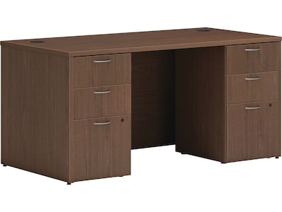 HON Mod 60"W Double-Pedestal Desk, Sepia Walnut (HLPLDS6030BBFSE1)