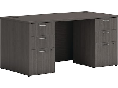HON Mod 60"W Double-Pedestal Desk, Slate Teak (HLPLDS6030BBFLS1)