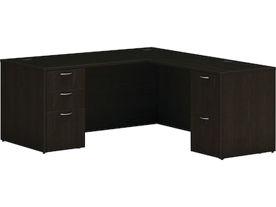 HON Mod 66"W L-Shaped Double-Pedestal Desk, Java Oak (HLPL6672LDESKJA1)