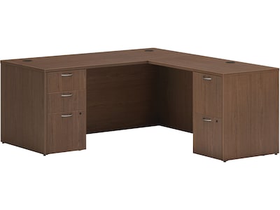 HON Mod 66"W L-Shaped Double-Pedestal Desk, Sepia Walnut (HLPL6672LDESKSE1)