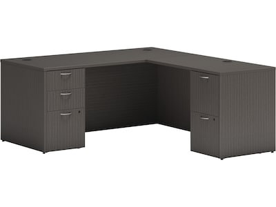 HON Mod 66"W L-Shaped Double-Pedestal Desk, Slate Teak (HLPL6672LDESKSL1)