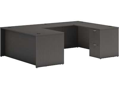 HON Mod 66"W x 96"D U-Shaped Computer Desk with 2 Support Pedestals, Slate Teak (HLPL6696UDESKSL1)