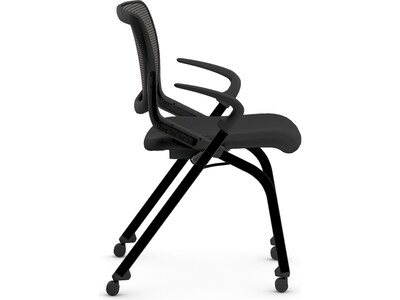 HON Motivate Fabric/Mesh Nesting Stacking Chair, Black/Charblack (HMN2.F.S.IM.ON.CU10.CBK)
