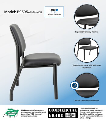 Boss Office Products Vinyl Bariatric Guest Chair, Armless, Black (B9595AM-BK-400)