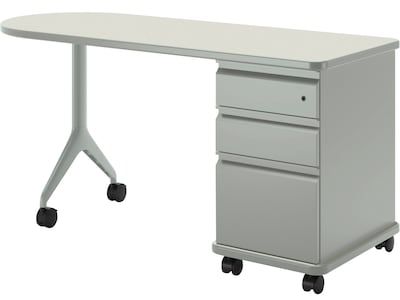 The ultimate teacher's assistant is the HON SmartLink mobile teacher station that accommodates technology and includes storage to keep school supplies well-organized and lessons visual and dynamic. This value teacher's station pedestal desk can be effortlessly wheeled anywhere in the learning environment, while offering the work surface and storage teachers need to stay on top of their lesson plans. The two box drawers provide tons of space for classroom supplies, while the file drawer accepts hanging files in either letter or legal format.