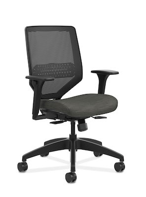 HON Solve ilira-Stretch Mesh /Fabric Mid-Back Task Chair, Adjustable Lumbar Support & Arms, Black/Ink (HONSVM1ALC10T)
