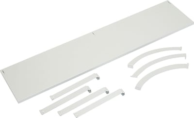This steel hanging shelf makes the most of vertical surfaces, and conveniently hangs over the top of the panel. Finish color is Light Gray.