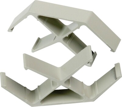 This 90-degree connector joins panels around a desk, and can be used for two-way, three-way or four-way connections or multi-height connections. Finish color is Light Gray.