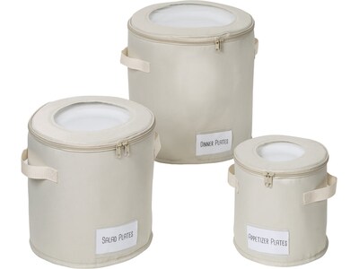 Honey-Can-Do Polyester Round Dinnerware Storage Cases, Natural, 3/Set (SFT-09234)