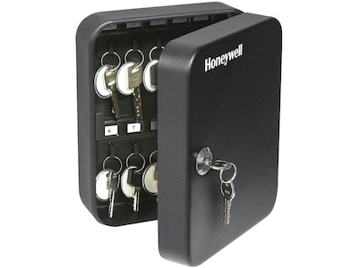 Organize important keys with this lock box. The included 24 hooks, rings, and label tags make organizing keys simple, and the built-in locking mechanism keeps them safe at all times. This Honeywell steel key lock box comes with predrilled mounting holes and mounting hardware for easy installation.