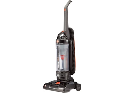 Bring deep cleaning action to your workspace with this upright vacuum. The HEPA filter works to remove dust and other small particles, while the removable dirt cup makes emptying a quick, easy task. This bagless vacuum features a simple brushroll and belt replacement system for convenient maintenance. A long 8-foot stretch hose and cleaning accessory pack help you reach the top of windows, around corners, and under furniture, providing versatile cleaning capabilities. Use the height adjustment dial to transition effortlessly from one flooring surface to another. A handy performance check indicator lets you know when this vacuum needs maintenance, and the 35-foot cord means fewer plug changes as you clean. With a lightweight design and uniquely shaped D handle, this Hoover TaskVac upright vacuum cleaner allows for more comfortable maneuvering.