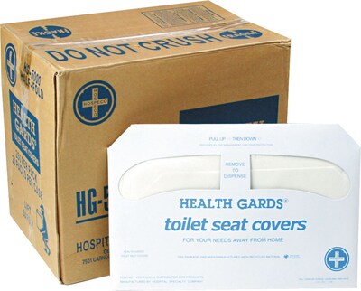 Hospital Specialty Health Gards Toilet Seat Cover accommodates most restroom stalls. Each pack includes 250 covers.