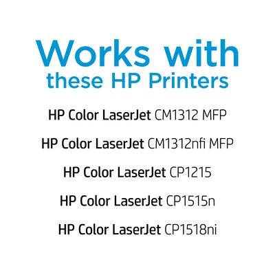 - HP 125 toner cartridges work with: HP Color LaserJet CM1312 MFP, CM1312nfi MFP, CP1215, CP1515n, CP1518ni
