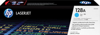 - What's in the box: 1 new Original HP 128A Cyan Standard Yield Toner Cartridge (CE321A)