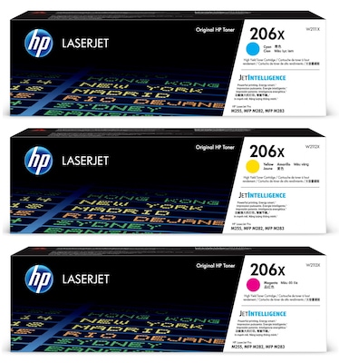 HP 206X Cyan/Magenta/Yellow High Yield Toner Cartridge Set, 3/Pack