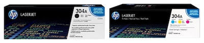 Enjoy smear-free, reliable printing by using these toner cartridges. With striking black and color print, these toner cartridges help get memos, letters and other documents noticed. This HP 304A toner cartridge bundle is compatible with select HP printers, making it a great choice for the home, classroom or workplace.