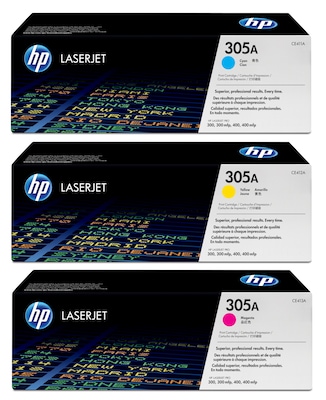 Order HP 305A Cyan/Magenta/Yellow Standard Yield Toner Cartridge Set, 3/Pack today at Quill.com and get fast shipping. Stack coupons to get free gifts & extra discounts!