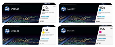 HP 410X Black/Cyan/Magenta/Yellow High Yield Toner Cartridge Set, 4/Pack