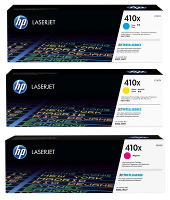 HP 410X Cyan/Magenta/Yellow High Yield Toner Cartridge Set, 3/Pack