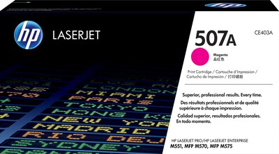 - What's in the box: 1 new Original HP 507A Magenta Standard Yield Toner Cartridge (CE403A)