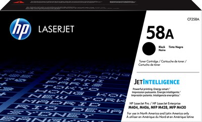 - What's in the box: 1 new Original HP 58A Black Standard Yield Toner Cartridge (CF258A)