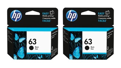 HP 63 Black Ink Cartridge, Standard Yield, 2-Pack