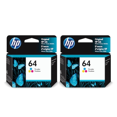 HP 64 Tri-Color Standard Yield Ink Cartridge, 2/Pack