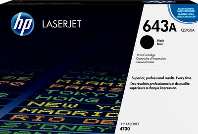 - What's in the box: 1 new Original HP 643A Black Standard Yield Toner Cartridge (Q5950A)