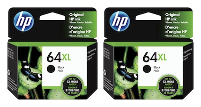 Original HP 64XL black ink cartridges print archival-quality black text that lasts for years. 2 Original HP Cartridges in one convenient bundle. Cartridges arrive individually packaged.