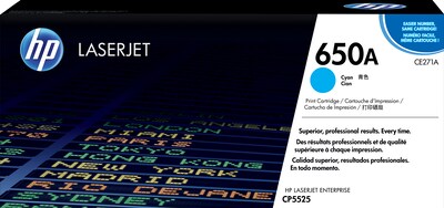 - What's in the box: 1 new Original HP 650A Cyan Standard Yield Toner Cartridge (CE271A)