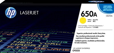 - What's in the box: 1 new Original HP 650A Yellow Standard Yield Toner Cartridge (CE272A)