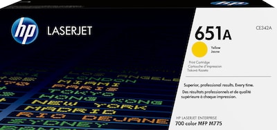 - What's in the box: 1 new Original HP 651A Yellow Toner Cartridge, Standard (CE342A)