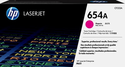 - What's in the box: 1 new Original HP 654A Magenta Standard Yield Toner Cartridge (CF333A)