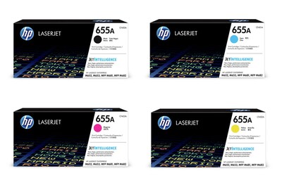 HP 655A Black/Cyan/Magenta/Yellow Standard Yield Toner Cartridge Set, 4/Pack