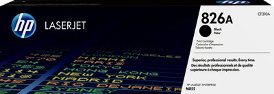 - HP 826 toner cartridges work with: HP Color LaserJet Enterprise M855dn, M855x+, M855x+ NFC/wireless direct, M855xh