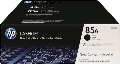- What's in the box: 2 new Original HP 85A Black Standard Yield Toner Cartridges (CE285D)