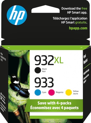 Save money on every page with an Original HP 932XL and 933 combo pack. Get the quality of Original HP 933 ink on every page with vibrant colors and striking detail. With 4-packs, you can grab everything you need in one trip so you can save time: cyan, magenta, and yellow ink makes your images pop while rich blacks add color and shade variety to your prints.