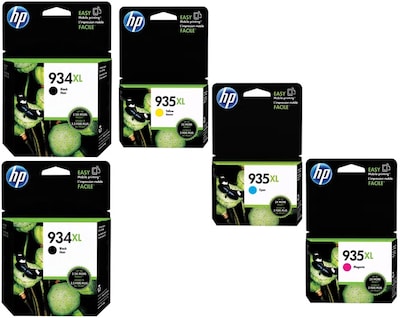 HP 934XL/935XL Black/Cyan/Magenta/Yellow Ink Cartridges, High Yield, 5/Pack (6ZA02AN#140)