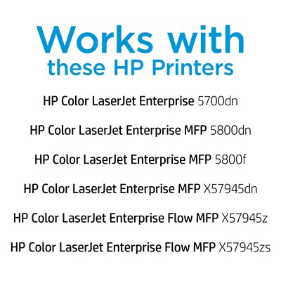 Compatible with: HP Color LaserJet Enterprise 5700/5700dn/X55745dn; HP Color LaserJet Enterprise MFP 5800/5800dn/5800f/X57945dn; HP Color LaserJet Enterprise Flow MFP 5800zf/X57945z/X57945zs printers