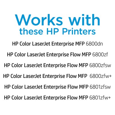 Compatible with: HP Color LaserJet Enterprise 6700/6700dn/6701/6701dn; MFP 6800/6800dn/6801; HP Color LaserJet Enterprise Flow MFP 6800zf/MFP6800zfsw/MFP6800zfw+/MFP6801zfsw/MFP6801zfw+ printers