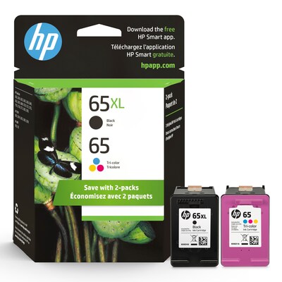 HP 65XL/65 Black High Yield and Tri-Color Standard Yield Ink Cartridge, 2/Pack (6ZD95AN)