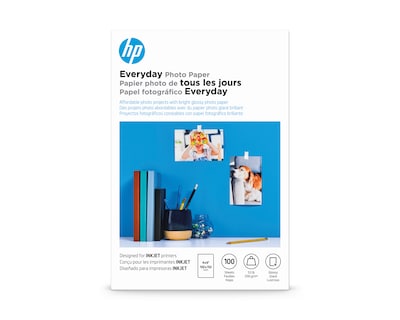Get vibrant results with this everyday photo paper. The glossy finish gives a sleek, professional appearance, making this paper great for printing invitations, pictures and other documents, while the 53-pound paper weight produces a high-quality feel. This HP Everyday photo paper comes with 100 sheets per pack, and each sheet is 4 x 6 inches, making it ideal for smaller photos.