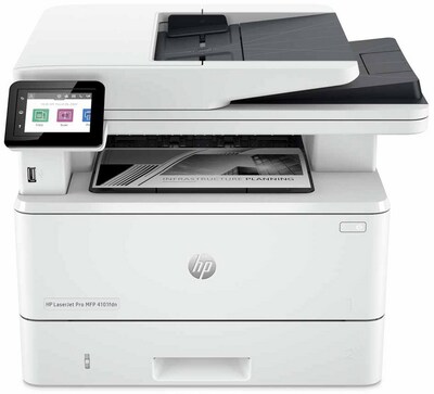 The HP LaserJet Pro MFP 4101fdn delivers high-quality black text and graphics, plus powerful all-in-one print, scan, copy and fax productivity. Super fast and super easy with wired connectivity and advanced features for small teams.